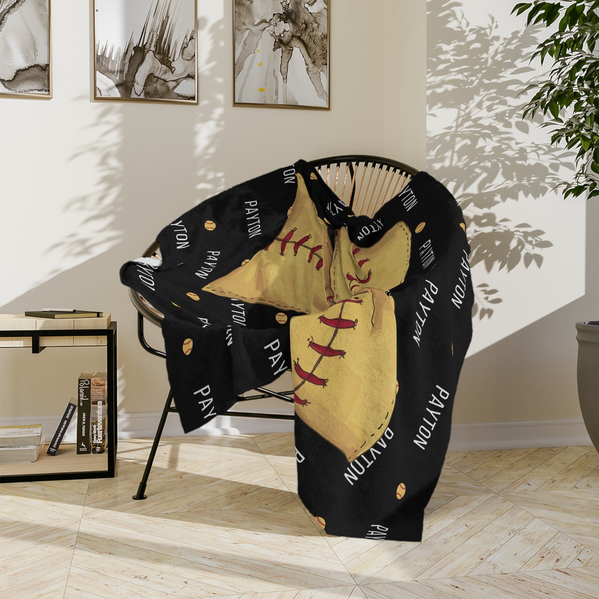 Personalized Softball Blanket Customizable with Softball Player Name, Number and Softball Coquette Bow