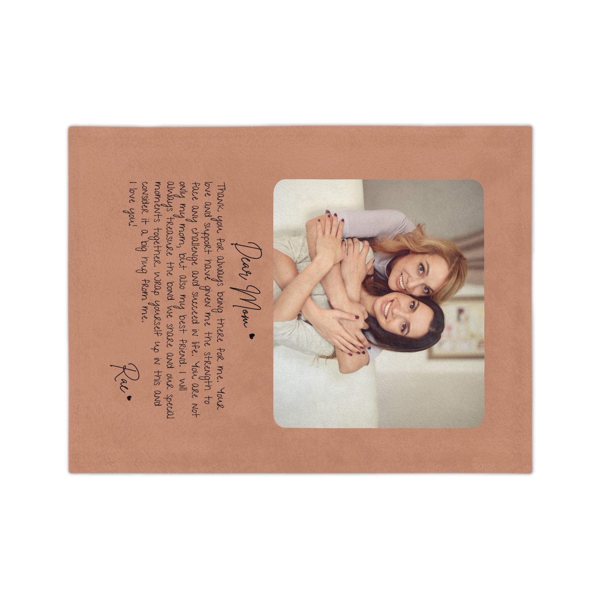 Struggling to find a gift that captures the unwavering bond between you and your mom in a truly personal and heartfelt way? Look no further than our Custom Letter to Mom Blanket. This lightweight, 100% polyester blanket is customizable with your custom letter and family photo, making it a unique and heartfelt sports mom gift that will surely warm her heart. Great gift for mom on Mother's Day, Mom's birthday, or any time you want to show love to your mama.